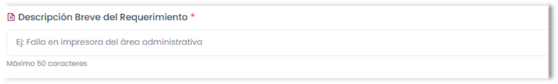 Descripción Breve del Requerimiento: Se ingresará el detalle de la falla por lo cuál se levanta el Ticket.