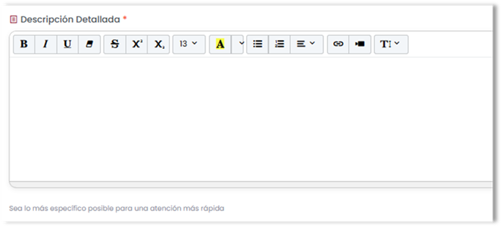 Descripción Detallada: Aquí podrá ser mas detallado o especifico sobre su problema informático e incluso podrá agregar una imagen adicional.