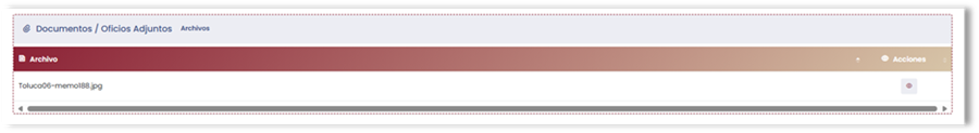 Sección Documentos / Oficio Adjuntos: solo mostrará el archivo que se adjunto al crear o abrir el Ticket MDA como evidencia o sustento.